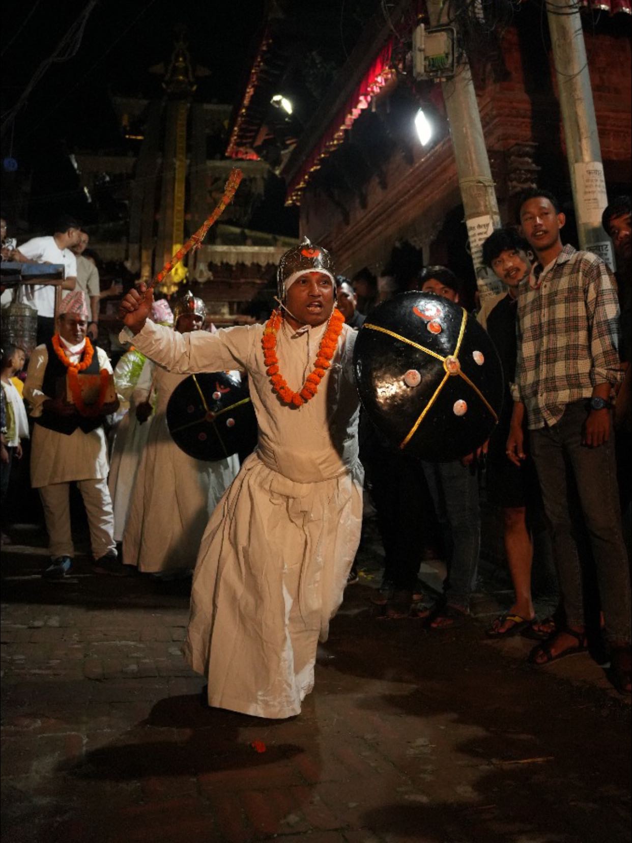दरवारबाट पमा नायो (प्रधान नाईके)को नेतृत्वमा मल्लकालिन सिपाहिको भेषमा जात्रालुहरु टाउकोमा फलामे टोपी, हातमा तरवार, खुँडा र ढाल बोकेर निस्केका थिए । ती सिपाहिहरुले युद्ध कौशल पनि प्रदर्शन गरेका थिए ।