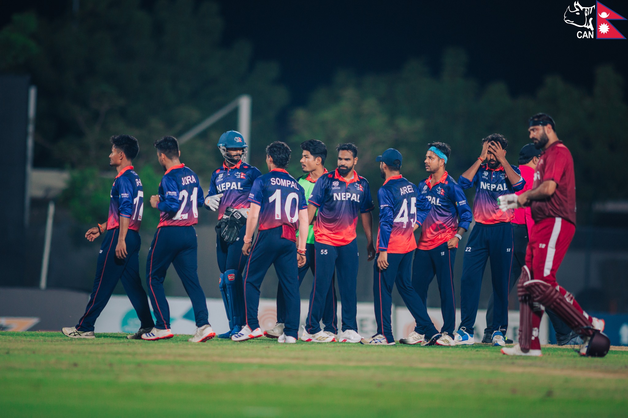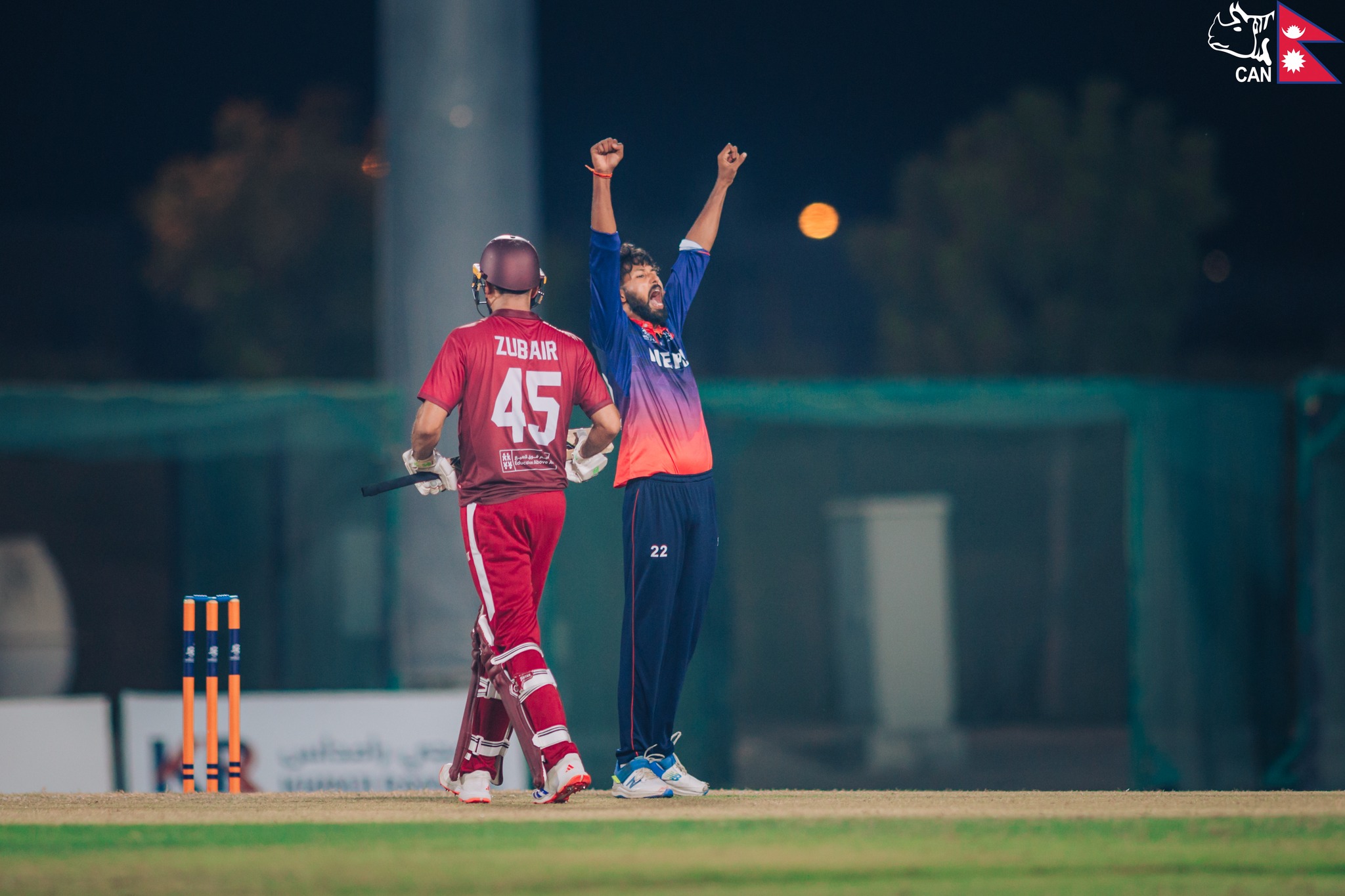 ओमानमा सोमवार राती सम्पन्न खेलमा नेपालले दिएको १४८ रनको लक्ष्य पछ्याएको कतार १४२ रनमा सिमित बनेपछि नेपालले रोमाञ्चक जित दर्ता गरेको हो ।