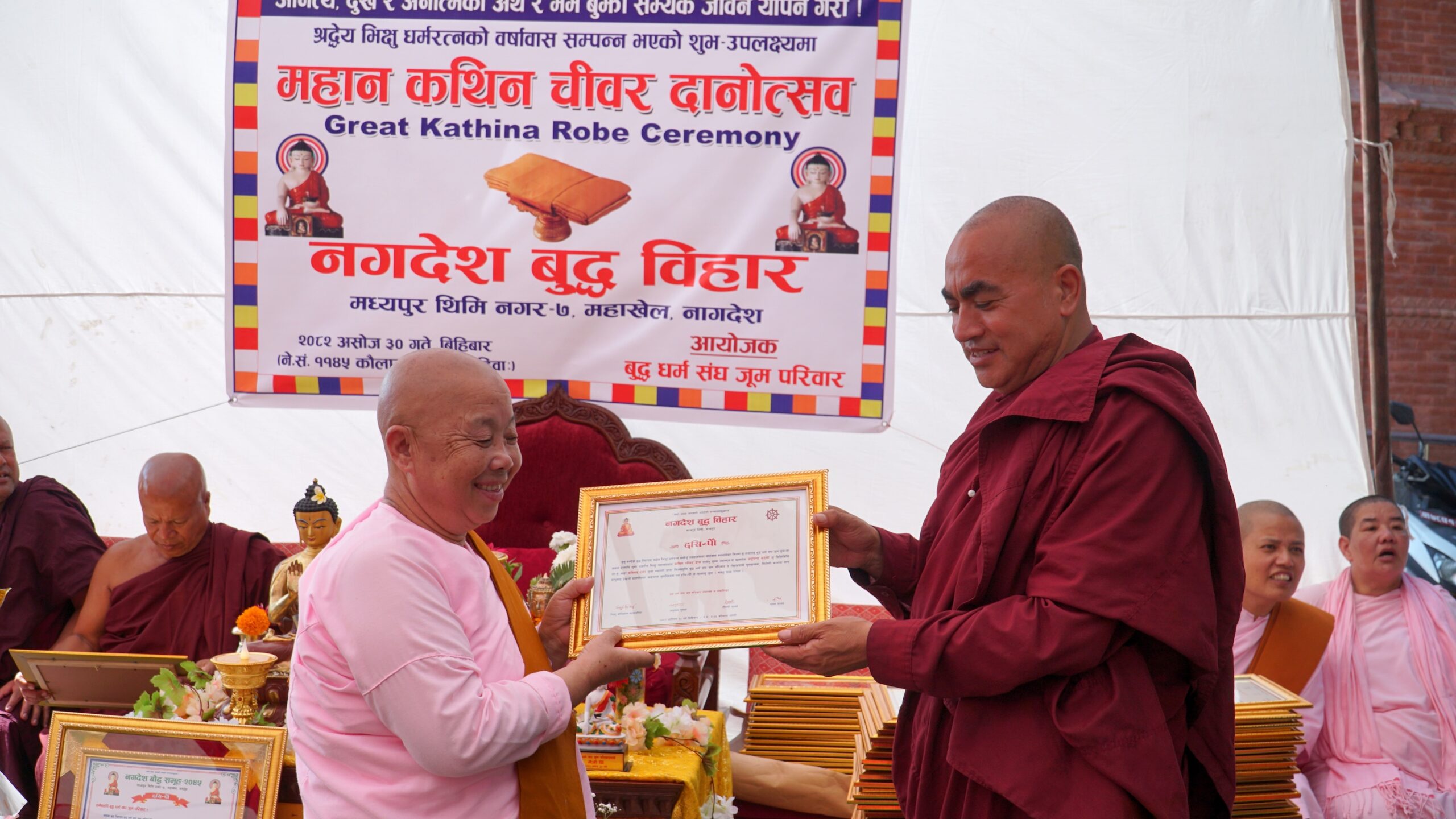 कार्यक्रमको दोस्रो चरणमा जूम परिवारका ६० जना कथिन दाताहरूलाई सम्मान पत्र र विहारको तर्फबाट बुद्ध प्रतिमा रहेको फोटो फ्रेम प्रदान गरिएको थियो।