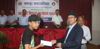 भक्तपुर नगरपालिकाद्वारा ७० लाख बराबरको छात्रवृत्ति वितरण